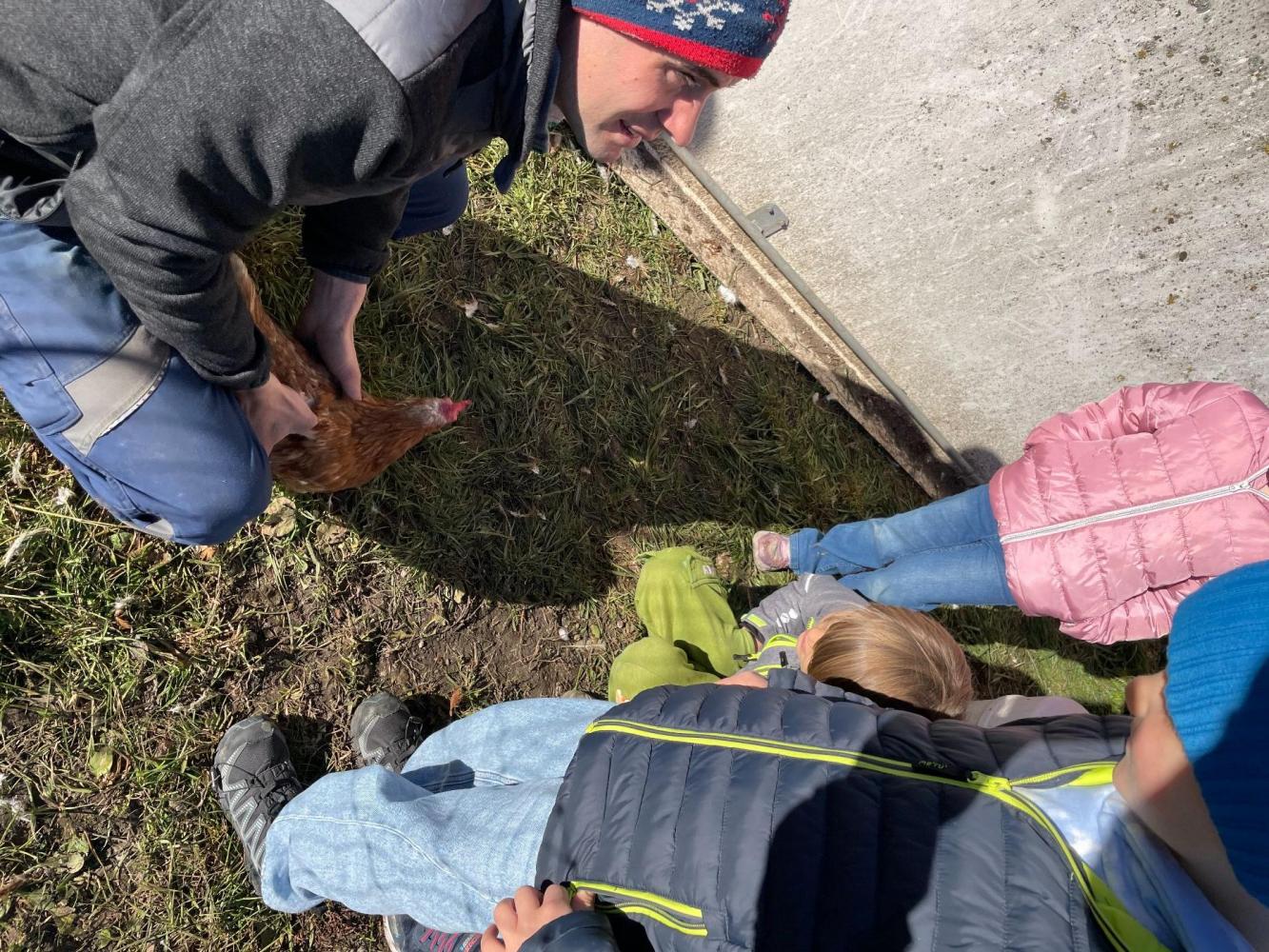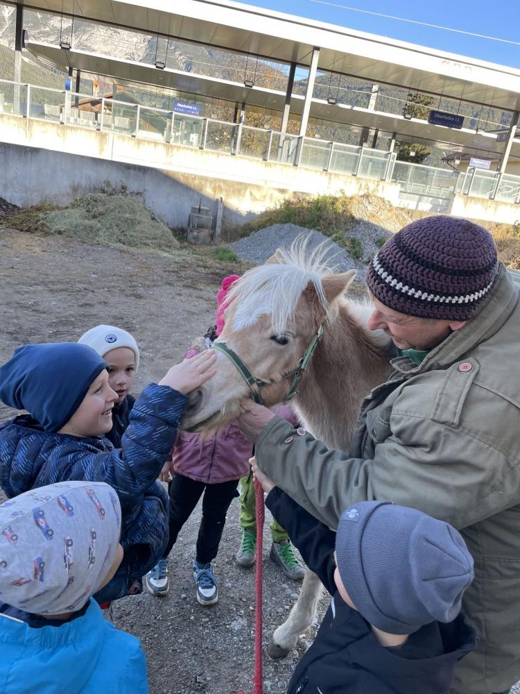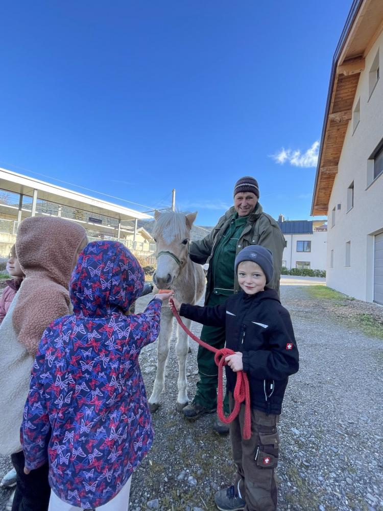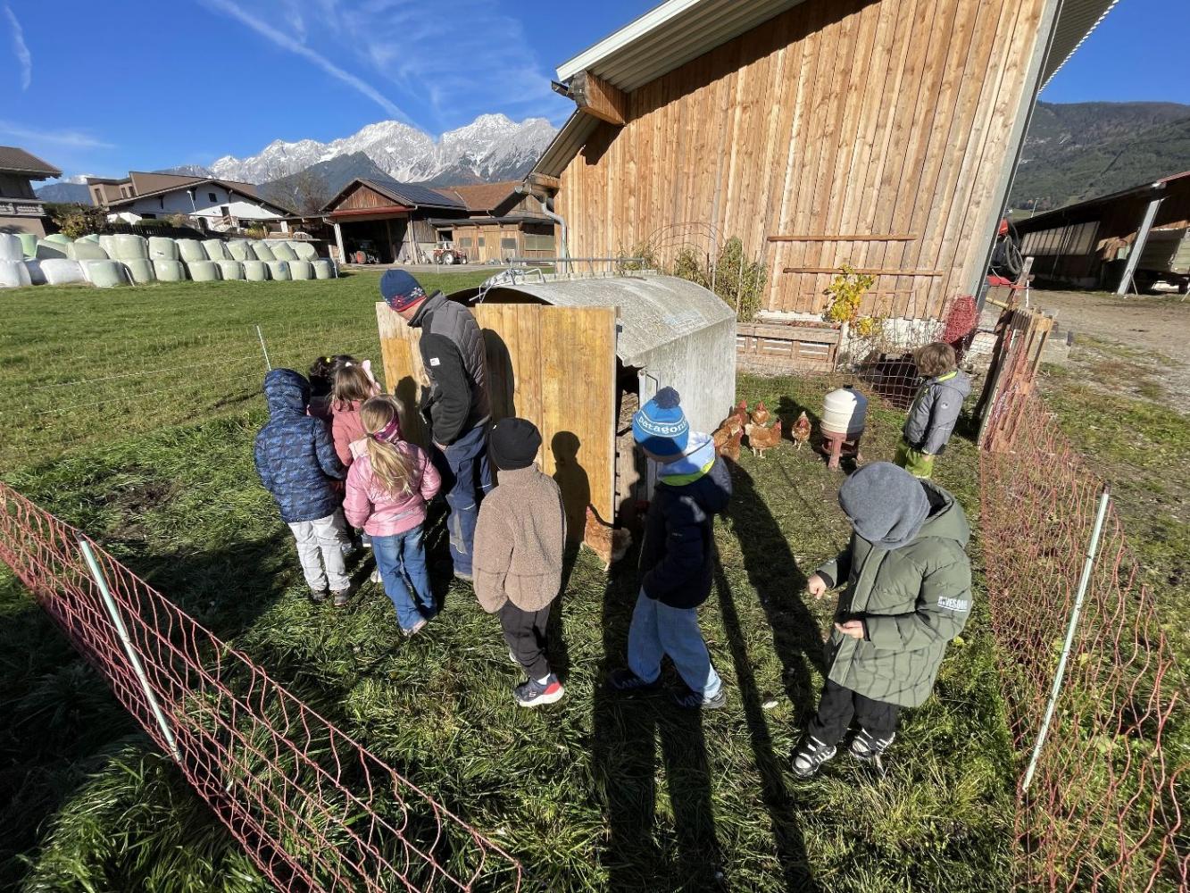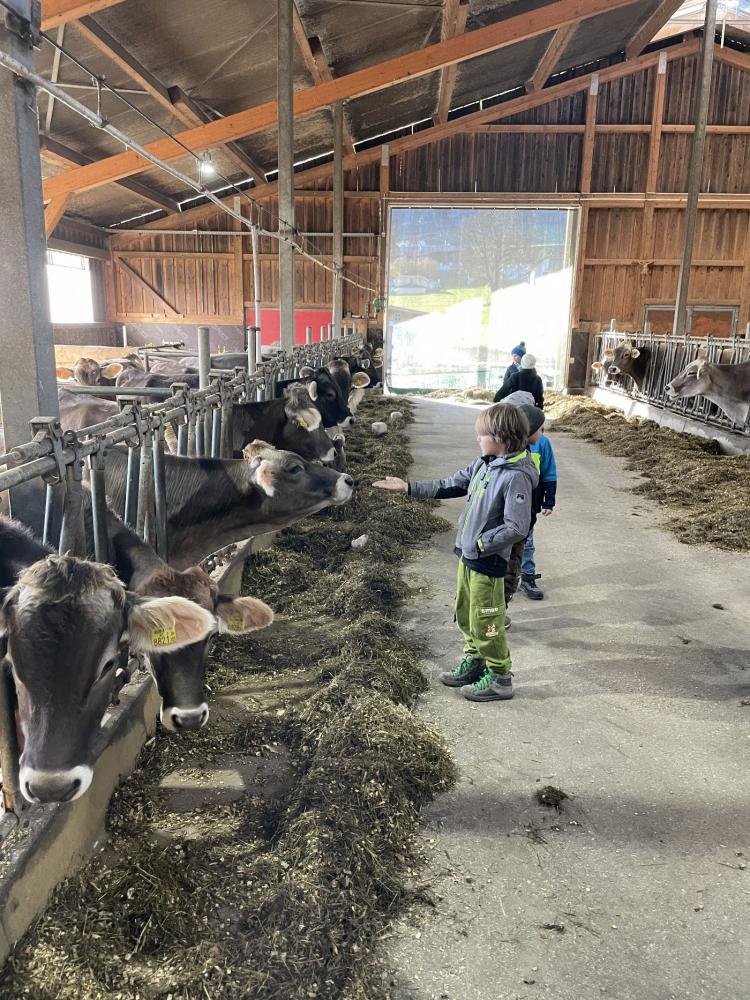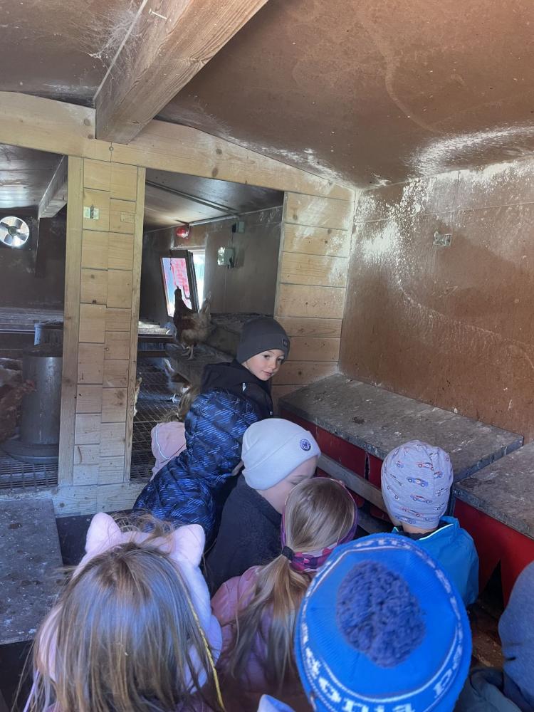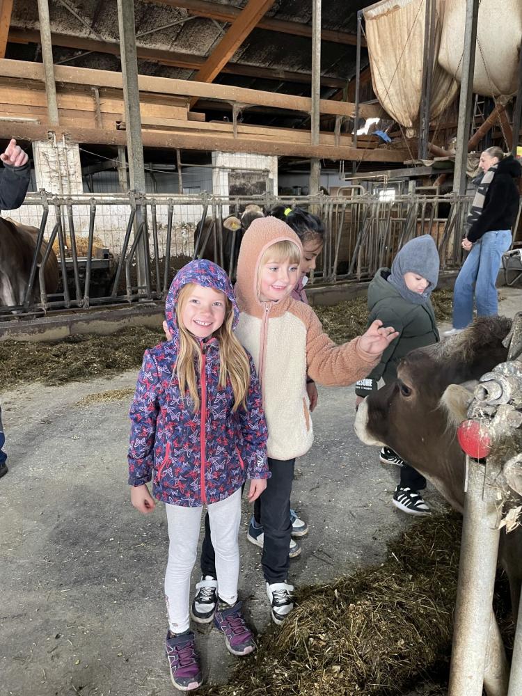 Die Kinder konnten Pferde mit ihrem Fohlen, Kühe mit einem erst wenige Tage alten Kalb und Hühner aus nächster Nähe sehen. Besonders spannend war die Erklärung, wie das Melken funktioniert – und als besonderes Highlight durften die Kinder sogar zusehen, wie die Milch abgeholt wurde und ein wenig mithelfen.