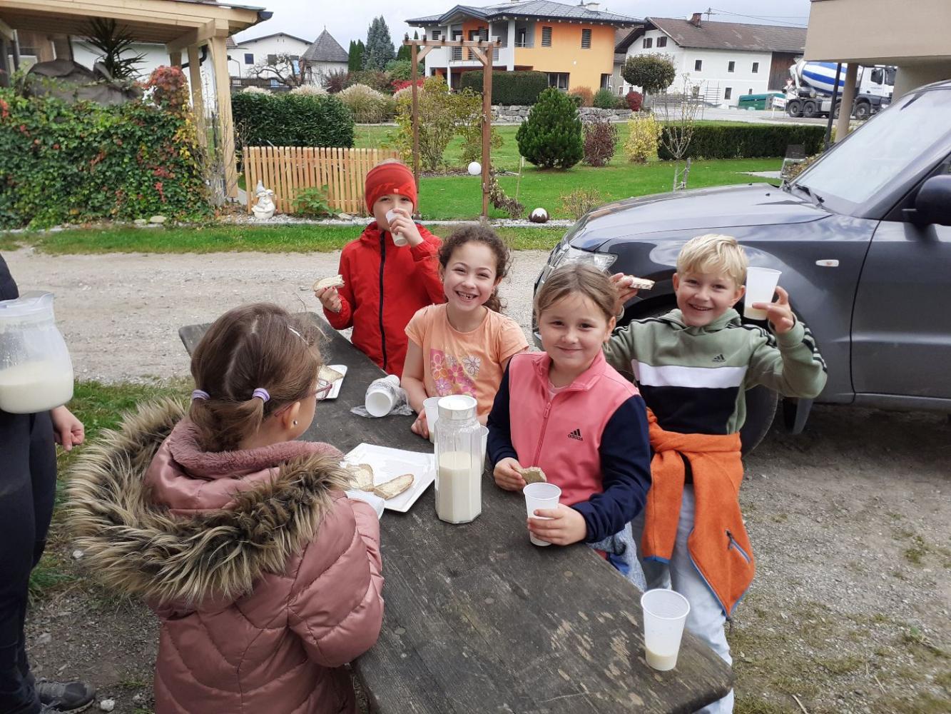 Zum Abschluss gab es noch eine kleine Verköstigung der hofeigenen Milch, sowie ein leckeres Butterbrot.