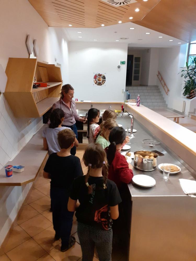 Am 15. Oktober ist Welternährungstag. Dies war für die Bäuerinnen aus Oberhofen Anlass, die 2. Klasse der Volksschule zu besuchen. Die Kinder lernten einiges über die Kartoffel. Unter anderem ging es um ihren Anbau, das Wachstum, die Ernte sowie die Lagerung. Außerdem wurden verschiedene Speisen, welche aus Kartoffeln hergestellt werden können, genauer besprochen. Zum Abschluss durften die Kinder noch eine kleine Verkostung machen. Die Bäuerinnen bereiteten "Schölferler" vor.