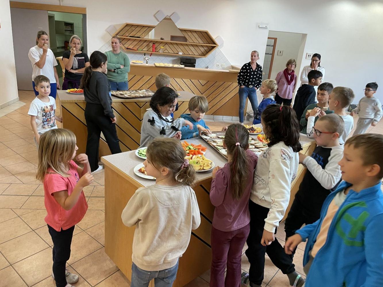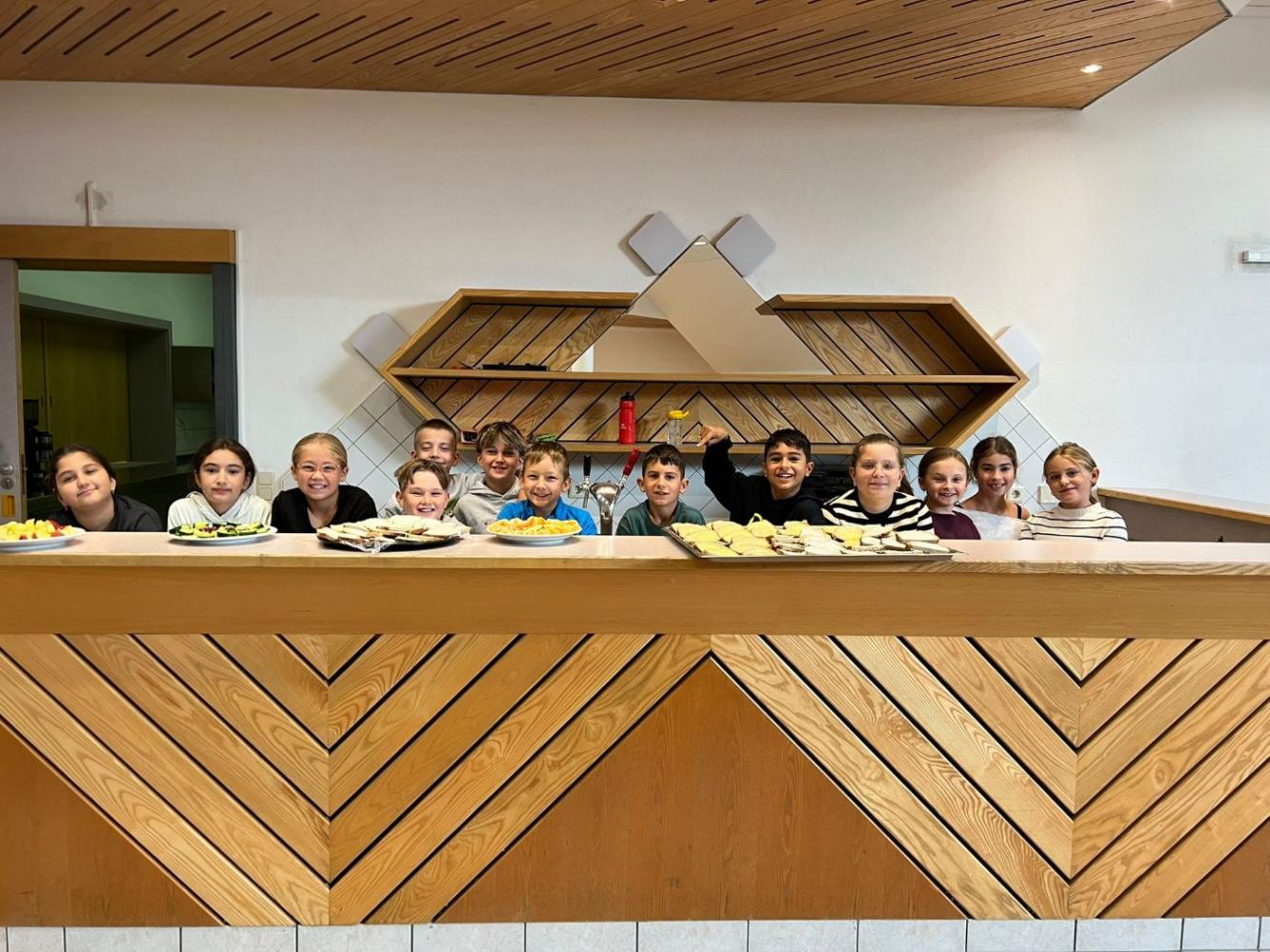 Gemeinsam mit unserer Direktorin bereitete die Klasse 4a eine gesunde Jause für die gesamte Schule vor. Mit viel Freude schnitten, belegten und dekorierten die Kinder köstliche Häppchen, die anschließend von allen SchülerInnen verkostet werden konnten.